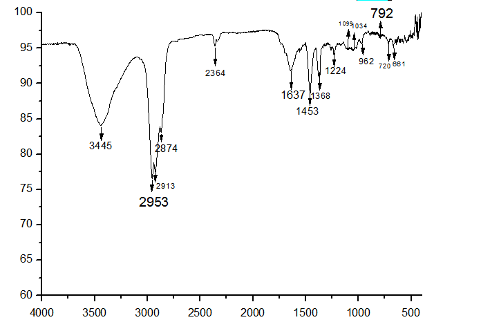各位还在战斗的虫友们好! 帮忙分析一下,红外图谱。下图是从产品里剥离下来的物质做的红外谱图,图中的各个峰值基本有标注。想要知道这个物质到底有什么组成。我做的是丙烯酸类乳液,原材料中大概有丙烯腈、乙酯、衣康酸,对比起来看真心推到不出1630左右的那个双建峰是谁的,请各位大神帮忙分析一下此物质大概是什么东东。不胜感激。。。。。 红外 |