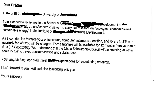 感觉文科类的真的很难获得OFFER,套磁了一个多月,外方学校发来了个OFFER, 邀请函可能存在的问题:CSC要求邀请函明确起止时间,我收到的这个邀请函虽然明确了去的时间,但是回来的时间没明确,只写了设施共对我开放12个月,不知道时间是否满足CSC的要求? 跪求各位帮助,给予建议!! 2.png |