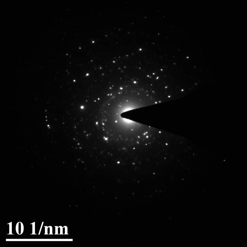 你看到的排列有序的单晶的尺寸可能比较小,也许几纳米也许十几纳米。根据我的了解,一般的选区电子衍射的光圈,最小的尺寸一般都是100nm,因此,得到的电子衍射图片是来自好几个甚至很多单晶的整理效果。所以会出现你看到的这样的情况。