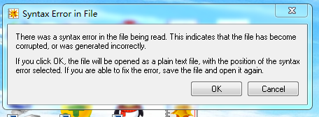 Mathematics 提示有 “Syntax Error in File” ,怎么打开? 本人用 Mathematics 求解PDE方程,一直很正常,今天突然打不开了,提示有句法错误?!求解决办法!! ![]() 各位虫友、大神帮帮忙啦! 搜狗截图15年11月24日1448_1.png |