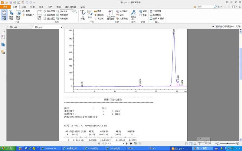 液相色谱进行样品分析,出现下面情况。 同样浓度,进样量为5微升,谱图为图1 进样量为20微升,谱图为图2. 一开始怀疑谱图2中有包裹的物质,想过更改分析梯度,也是同样结果。 流动相为;A(取磷酸二氢钾5.99g,加水1100ml溶解)+(1.89g四庚基溴化铵加1000ml甲醇溶解)混匀为A项 B 甲醇:水=22:3 图1.JPG 图2.JPG |