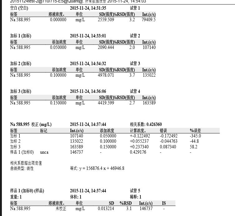 因为是前天刚接触ICP测试,有很多不懂的,比如相关系数的由来,SD和RSD,误差分析等等,但是老板要的有比较着急,哪位帮忙解答一下?不胜感激。我用的是VARIAN 710做的。得到结果见图片 飞鸽截图20151125113324.png |