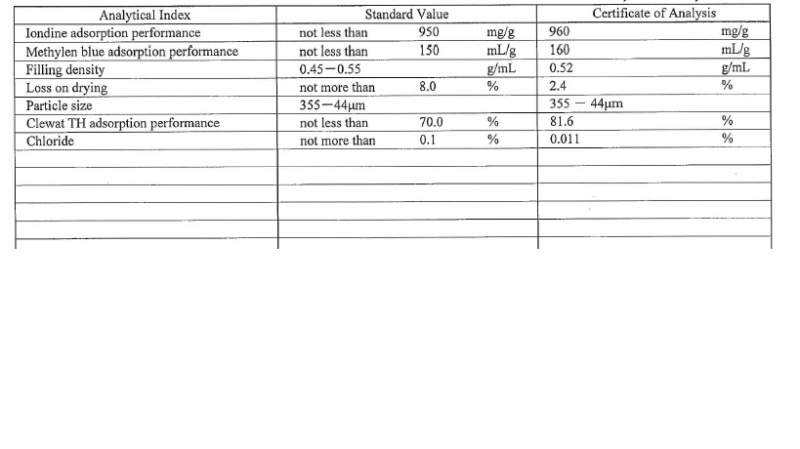 Clewat TH adsorption performance 这个是活性炭检测项目中的那个项目,中文意思是?