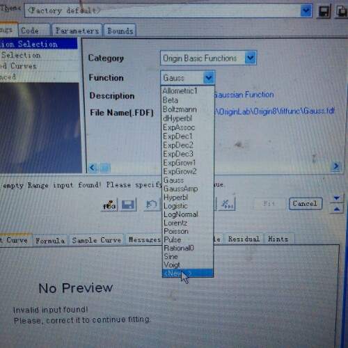 origin制图软件中,我需要拟合一个动力学方程,方程如下:F=a-b*e^(-t/c) (其中,F,t为实验所得数据,a,b,c为所求参数)。 origin中没有这个方程,所以需要新建一个方程来拟合,编程用的是C语言。求各路大神帮我编一下这个方程的程序,谢谢谢谢!若有金币,我会再追加的。 |