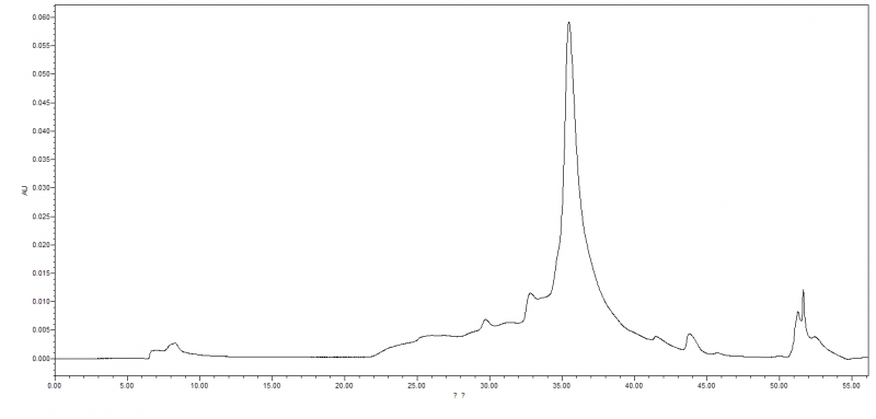 如果用了肠激酶切割蛋白后,过高压应该有几个主峰?我过完后的图片是这个样子的,然后满心欢喜的拿了最大峰的峰尖打了质谱,可是并没有出现我的目的蛋白大小,也没有出现融合头大小的分子量,是什么问题?求各位大神! ]`@O]M{S6YG4F64QCF4O{TP.png |