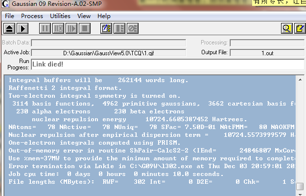 老师您好,谢谢您的指导!非常感谢 Gaussian 03 上没有wb97xd,重按了09. 使用你您提供的方法,但是运行就link died!版本和03不同, link 0,这一栏里 有特别需要设置的数据吗??谢谢您!