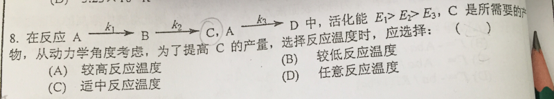 8、选A。竞争是k1和k3,提高温度有利于活化能大的反应。