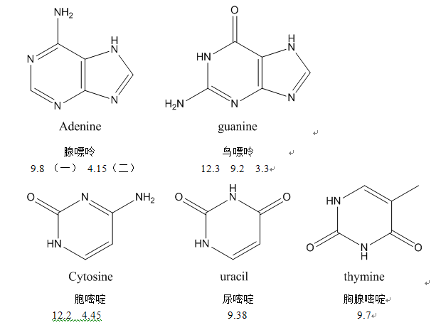 A/T/C/G/U 核苷碱基的pKa值 急!!!