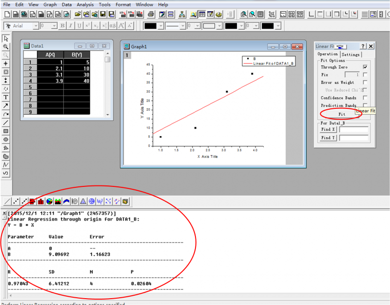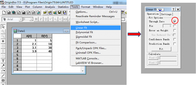 如何利用Origin进行y=bx拟合,而非y=a+bx