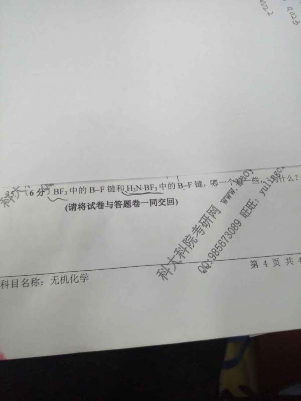 BF3中的B-F键短于NH3.BF3中的B-F键。理由BF3中存在四中心六电子的大pi键,其B-F键具有双键性质;而NH3.BF3中的B是sp3杂化了,只是B-F单键。