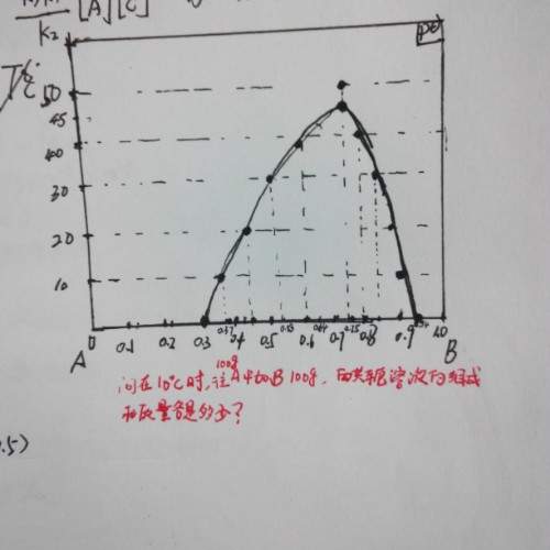 题中所问两共轭溶液的组成,指的是什么?是不是也要用到杠杠规则?求大神解惑。若在10℃时,至少在100克A中加入多少克B,才能使A层消失? 发自小木虫Android客户端 |
