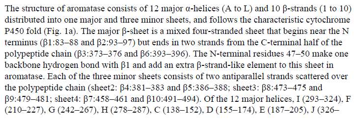 aromatase. Each of the three minor sheets consists of two antiparallel strands scattered over