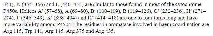 more variability among P450s. The residues in aromatase involved in haem coordination are