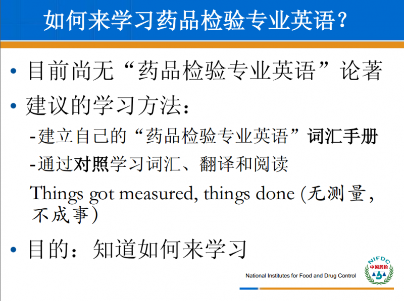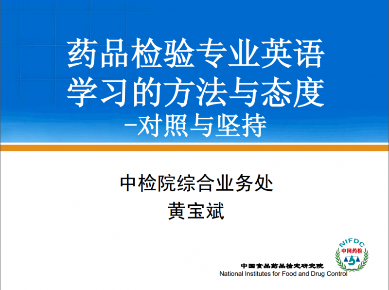 药品检验专业英语学习的方法与态度-对照与坚持—黄宝斌(中检院)2015.11