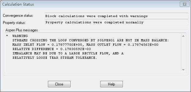 如题。 1:用Aspen Plus模拟CO2吸收的循环过程时,吸收塔radfrac模块外部循环200步以后仍不收敛(如图1),增大收敛容差好像不能解决; 2:结果中有警告:回路$OLVER01质量不守恒(如图2),请问有什么方法可以校正。 求助大神,感激!! ![]() Radfrac外部循环不收敛.jpg 回路警告信息.jpg |