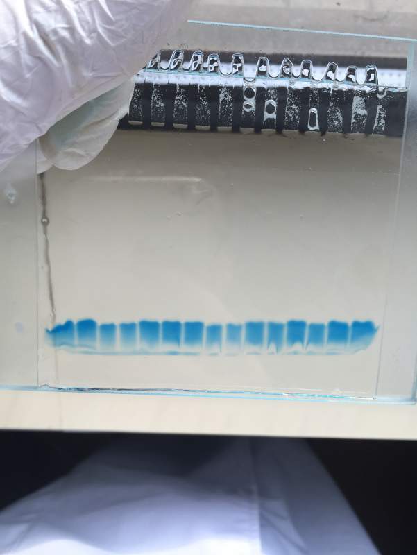 最近的蛋白电泳遇到了图中的情况,目的条带内外不齐(感觉像是两个带一样),是什么情况呢?