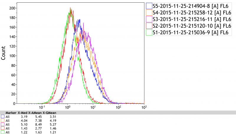 最近刚开始测流式,发现阳性样品实验的荧光信号和阴性对照区分不是很大,想用GFI来表示信背比,但数据只有X-GMean值,对流式不是很懂,网上查到,GMean是指几何均数,常用于等级资料和对数正态分布。。。那它和GFI一样吗?求大神指导!!! KaluzaPlotImage.png |