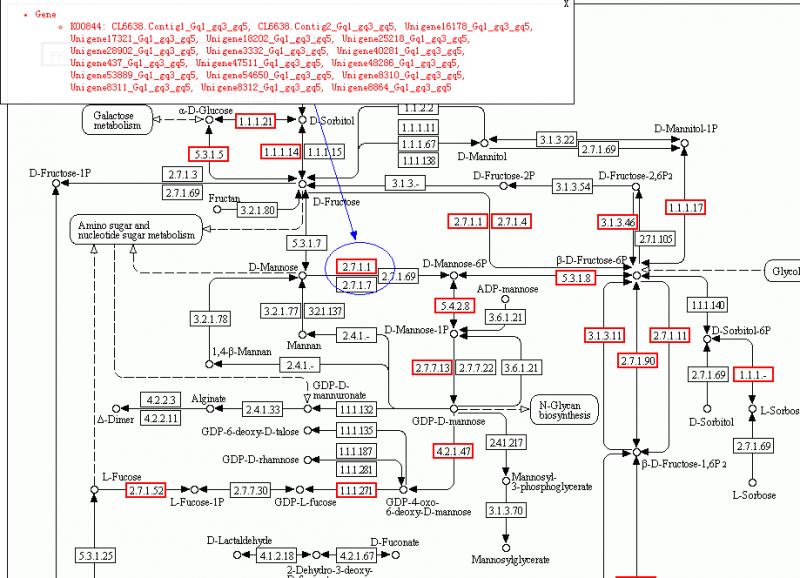 代谢通路里一个酶有多个unigene,到底是哪个是对应的unigene讷?下图里面的那个 2.7.1.1 对应的unigene有18个,到底谁是