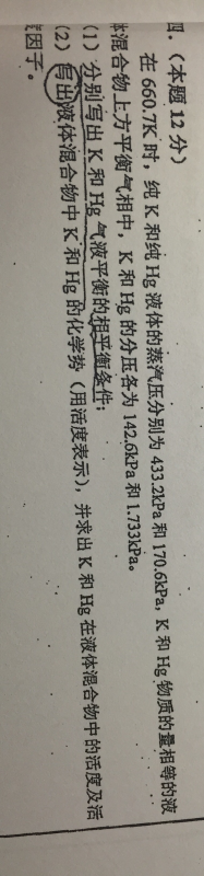 请问谷老师,本题第一小问,写出相平衡条件,是不是只要列出k和hg的化学势相等这一条件式吗? 发自小木虫IOS客户端 |
