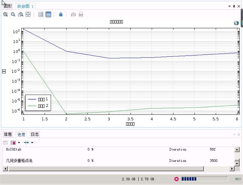 每次都是进行到32%,正在求解线性系统,只有BICGSMtab和几何多重子点法在增加数字,有大神知道怎么回事嘛?新人,就要汇报了 三维 钢板加热2.mph - COMSOL Multiphysics.jpg |