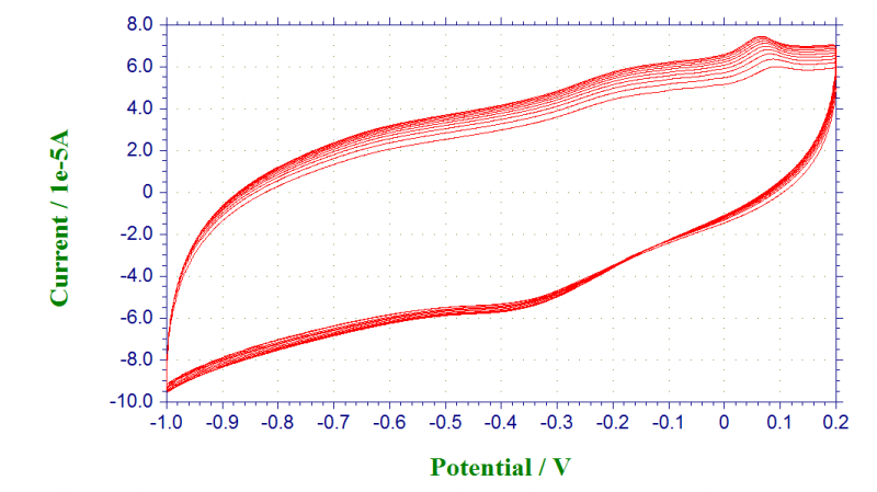 我个人认为,第一次测出来的图没有参考价值。我感觉你的电极头玻碳面积好大啊,我的是直径3毫米的,我都是用移液枪吸四微升滴上去的,经常需要滴好多次,才能很完整又不超出玻碳范围。你的ink是不是不够均匀才出现这样的情况,多超生一会会不会管用? 发自小木虫Android客户端 |