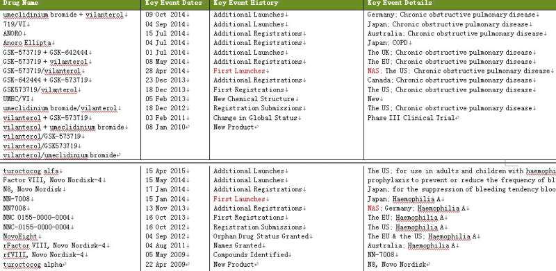 各位同仁,请教个问题。 pharmproject数据库查询的2014年全球上市新药统计。 现需要统计NAS个数。如图所示两种情况,第一种是大多数情况,first launches对应NAS;第二种情况是在first launches之前的某个事件中标注了NAS,请问该种情况的药物,是否该算是2014年新上市的NAS呢? 求赐教,谢谢! 无标题.jpg |
