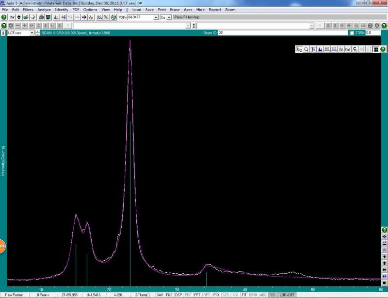 各位大神,怎样才能将Jade拟合后的结果(如图:原曲线和拟合后曲线)用origin画出来,已经尝试打开file ,save,primary patterns as *.txt,但是这个貌似并不是导出拟合后的峰的数据,和原数据做出的图是一样的。So, 应该怎么得到拟合出的两条曲线的数据呢?跪求大神们解答下!![]() ![]() ![]() 0#.jpg |