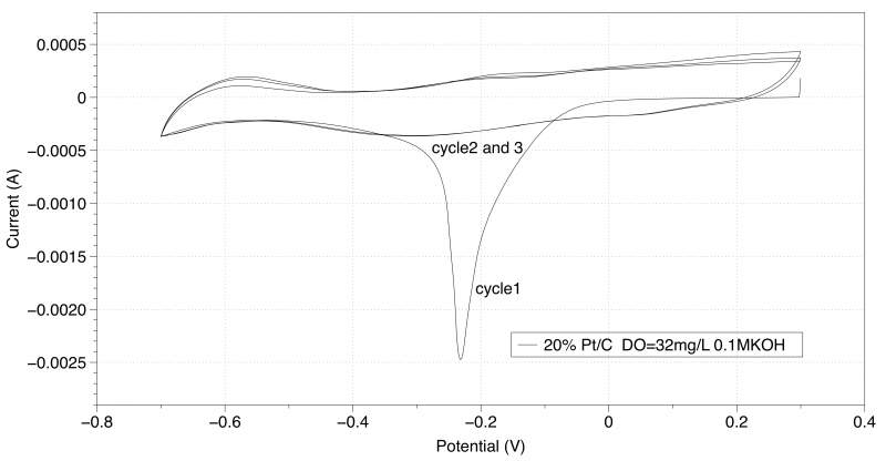 20%Pt/C的氧还原CV曲线, 为何第一圈明显有峰,而第二三圈峰完全不见了? 已有1人参与