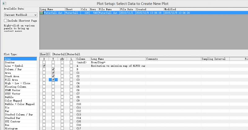 刚学origin8.5,发现我使用polt-waterfall的时候,总会少一条曲线。 选三个Y出来两条曲线,选四个Y出来三条曲线; 为什么呢?求大神指点一二吖 _A7T8$KPT6LES_S460L3_]V.png LBA$3{`JOM2O]OA@VFTZ}G0.png XBB%L58500318@Q[R3SNJZM.jpg |