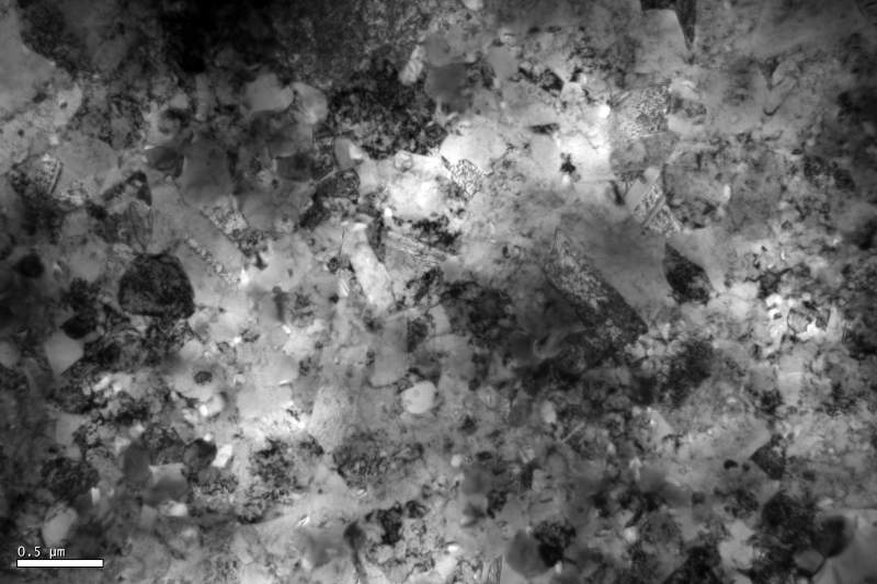 合金在TEM-BF image 下表现为许多纳米尺度的晶粒(如图2), 并且无法根据衬度确定各个不同的晶粒到底对应于哪个物相?为了在BF-image中找出各个物相,目前只知道通过打能谱的方法,根据EDS-TEM成分分析结果结合EDS-SEM结果确定该晶粒对应物相,然后再对该晶粒做SAED,确定对应物相的晶体结构。但是对于合金中存在的少量弥散相,由于BF image 中晶粒没什么特征再加上其分布可能不均匀,对各个晶粒盲目打成分的方法常常很难找出该物相对应的晶粒,从而难以通过SAED获得其结构信息。