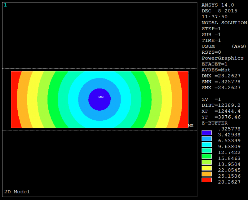 2.因为我就是想验证一下铜块自由收缩,也就是四周没有任何约束的时候是不是应该是均匀的向中心收缩的,所以没有加任何约束。那么为什么用三边形网格画出来的结果就没有出现刚体转动呢?我现在在做复杂的3D模型的时候也出问题了,2D的形变结果比较理想,3D的结果正好和2D相反。。。两种模型施加的底面约束一样,都是UY=0,只是3D的因为只建了一半的模型所以对称面用了对称约束,不知道对称约束和UX=0约束对结果影响大不大?