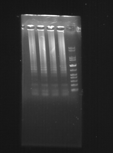 连接连个片段,长度分别为50几,由于片段比较少,没有进行第一步两个片段的扩增,直接加入了4个oligo进行PCR,然后第二轮加入两端引物进行扩增。跑胶目的条带很弱,而且拖尾很严重,是什么原因呢,求大神指导。 WKVJG}651SDC[(O16~4F%DI.png |