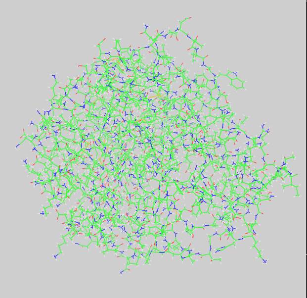 这是你文件输出的问题。这是边界周期性条件。你要看到正常 的蛋白质,应该用trjconv输出的时候,选择 trjconv -s md.tpr -f md.gro -n index.ndx -pbc mol -ur compact -o md.pdb