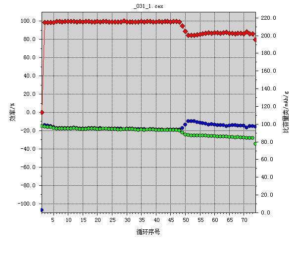 磷酸矾钠按照文献的做法做成钠离子半电池,高氯酸钠有机电解液,浆料做的有机系,测电池性能的时候总会出现如图所示的充放电突变情况,有没有有经验的前辈帮解释解释,看看能不能解决这个问题。