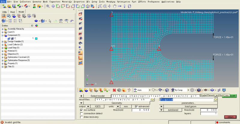 optistruct为什么会无法导出拓扑优化模型,为什么没有生成grid文件。 已有1人参与