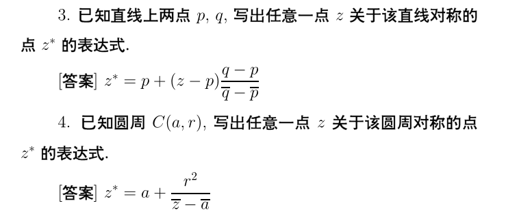 ![]() 第一道题目我想应该是用直线的一般方程:|z-p|/|z-q|=1来解的吧...但是这里的式子是模,如何才能表示题目里的点z*呢? 第二题利用类似的方程似乎就可以直接得到答案了吧? QQ截图20151209220754.png |