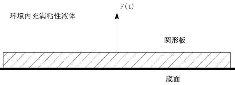 下图中有一圆形板紧贴底面,环境内充满粘性液体,现有一个力(常量或变量)将此圆形版升起,请问各路大神用什么公式或者概念去求圆形板与底面间隙的压力分布?