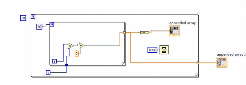 妹子用labview编程,遇到一点小问题,求大神帮忙解答。 下图是我随便举的一个例子。 将计算得到的数一个一个输入到数组里,一般是用两个循环嵌套。但是如果循环处理比较慢,我想在第一层循环里就把数据一行一行的输到数组里,也就是说让数组里的数据实时更新,并且不覆盖之前的数据。 图中两个数组,第一个会产生覆盖,最后输出的只有一行数组,而后一个数组是要全部循环结束后才能输出。 捕获.PNG |