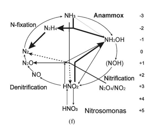 硝化作用(nitrification)是指氨在微生物作用下氧化为硝酸的过程。硝化细菌将氨氧化为硝酸的过程。通常发生在通气良好的土壤、厩肥、堆肥和活性污泥中。 硝化作用由自养型细菌分阶段完成。第一阶段为亚硝化,即铵根(NH4+)氧化为亚硝酸根(NO2-)的阶段。参与这个阶段活动的亚硝酸细菌主要有 5个属:亚硝化毛杆菌属(Nitrosomonas) ;亚硝化囊杆菌属(Nitrosocystis);亚硝化球菌属(Nitrosococcus);亚硝化螺菌属(Nitrosospira)和亚硝化肢杆菌属(Nitrosogloea)。其中,尤以亚硝化毛杆菌属的作用居主导地位,常见的有欧洲亚硝化毛杆菌 (Nitrosomonas europaea)等。 第二阶段为硝化,即亚硝酸根(NO2-)氧化为硝酸根(NO3-)的阶段。参与这个阶段活动的硝酸细菌主要有3个属:硝酸细菌属(Nitrobacter);硝酸刺菌属 (Nitrospina)和硝酸球菌属(Nitrococcus)。其中以硝酸细菌属为主,常见的有维氏硝酸细菌(Nitrobacter winogradskyi)和活跃硝酸细菌 (N. agilis)等。 |