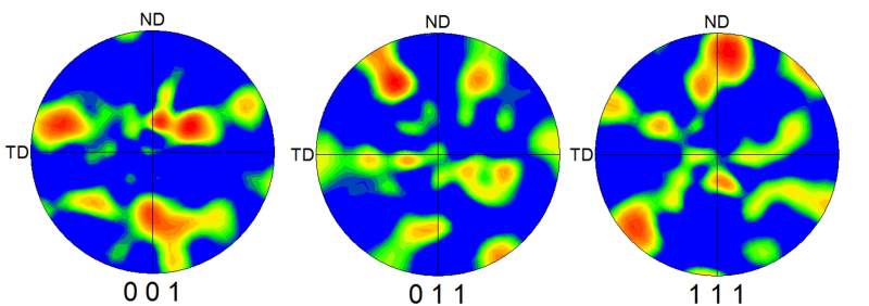 纯铝搅拌摩擦焊焊核区后退侧边缘处是什么织构类型?极图如下: