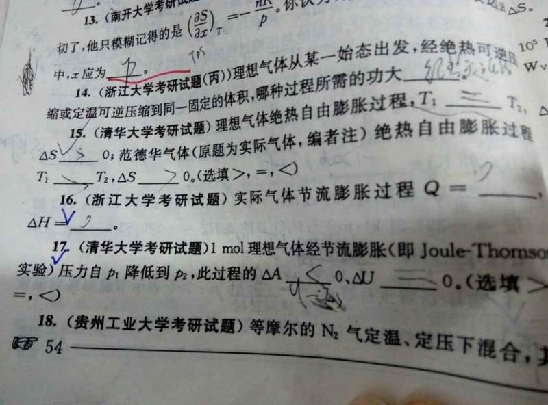 17题,在这个过程中温度变化为0吗 这道题怎么做呢,求大神指点 发自小木虫Android客户端 |