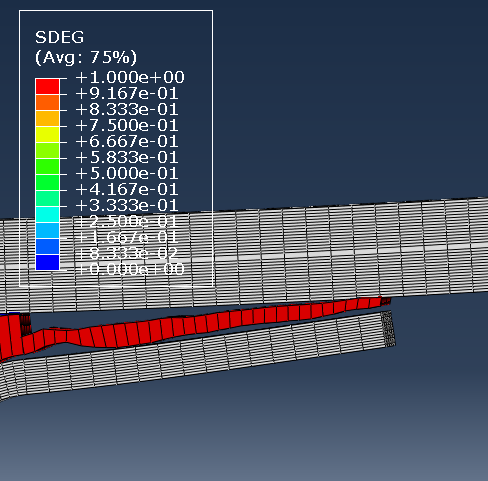 接触abaqus不久,在用Explicit计算时,碰到了如下问题。 cohesive单元模拟胶层失效:cohesive单元失效后,并没有删除(mesh里设置过了),反而是出现了畸变(如图)。有没有虫虫有类似经历。 1.png |