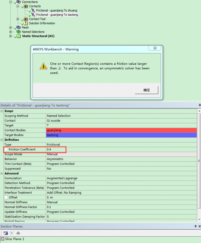 workbench 摩擦接触,摩擦系数大于0.2报警的原因?已有1人参与