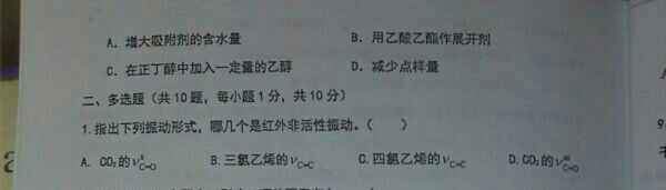 Rf值偏大 想减小 个人倾向于增加硅胶含水量 因为硅胶含水量增大极性减弱对极性物质吸附能力减小 但是感觉B C 增大展开剂极性似乎也行←_← 上一篇求助帖金币不知道怎么给 晚上回寝室用WIFI时再弄 连带着也问一下24题 谢谢大家了! 发自小木虫Android客户端 |