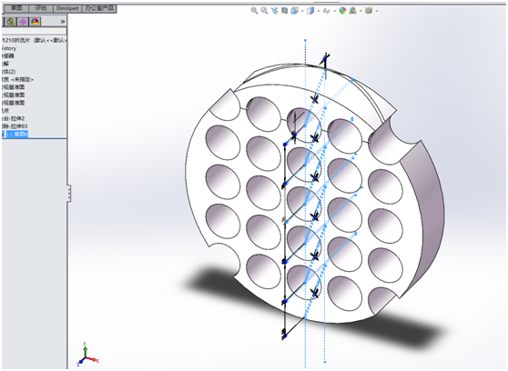 用solidworks画帘式折流片换热器时,在画折流片时,画完第一张图后,在右基准面上画如图2的草图,然后进行切除,只切了第一个长方形轮廓,其他下面五个无法切除,最后出现第三张图的情况,请教大神,怎么回事? YK3KH2$H@)V{Z(VW%QZ60C3.png 7`DM]RF$@[XK6{2RTJQ`KIT.png G@ARE%K20}2%T941EVQRO51.png |
