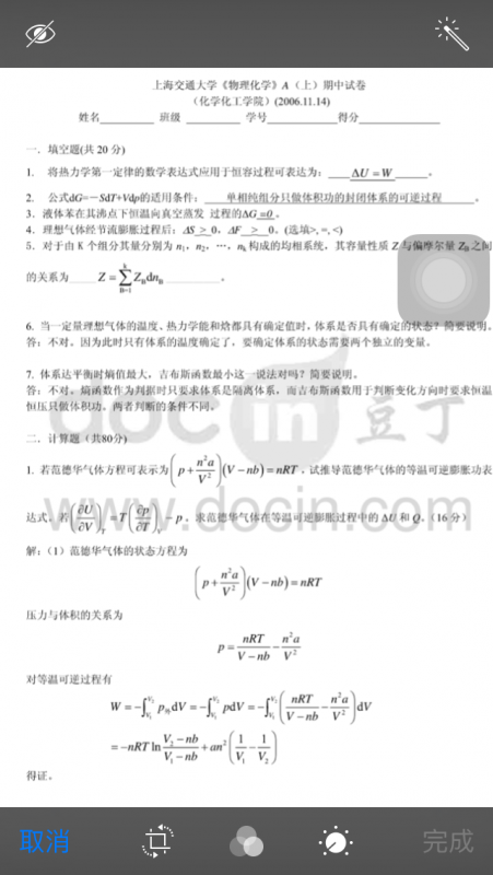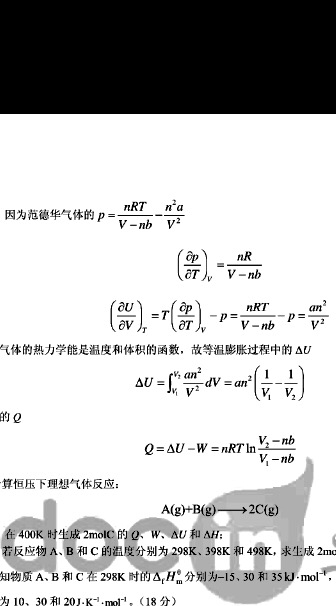 范德华气体的等温可逆V1到V2过程的热力学能ΔU 熵变ΔS 对外界做功W 亥姆霍兹自由能ΔA 和吉布斯自由能ΔG表示式(以温度和体积为变量) 发自小木虫Android客户端 |