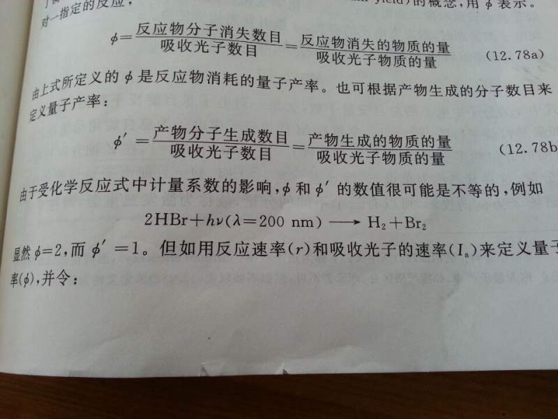 要考虑分布反应,不能考虑总反应,H?+HBr===H2+Br?这里吸收了一个光子,产生了一个H2分子 发自小木虫IOS客户端 |