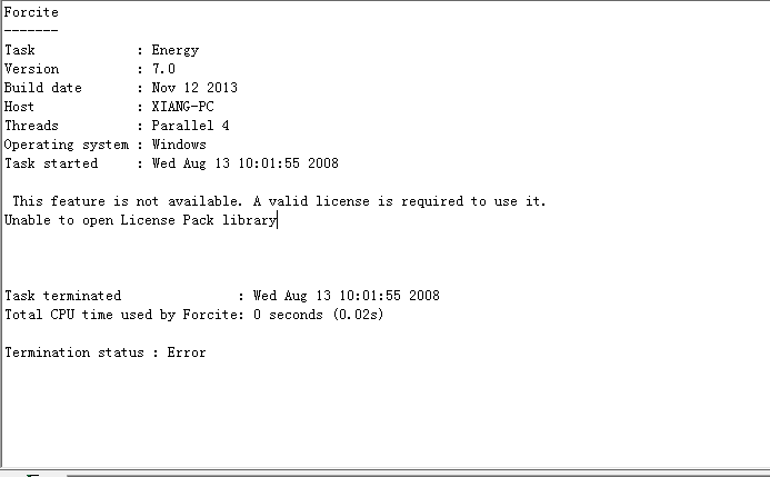 我是materials studio 2017, 也遇到这个问题了。安装了license, 而且test gateway也测试成功,但做计算仍提示“Unexpected termination of DFTB+ Energy calculation This feature is not available. A valid license is required to use it. Unable to open License Pack library”,求大神帮忙解决,感谢~ |