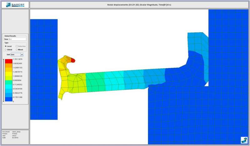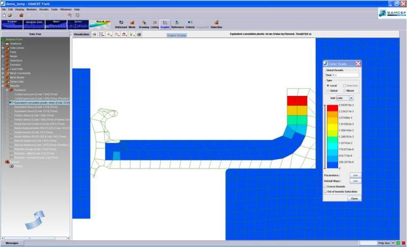 本案例主要介绍利用轴对称模型特点,将其转化为二维面模型进行分析。案例中分析的模型主要结构包含:轴,框架及核心连接部分,他们都为塑料材料。模型的主要分析步骤包括: Step of analysis: 1. Geometry Definition 2. Creation materials and behaviors 3. Definition of contact condition and boundaries conditions 4. Mesh constraints 5. Mesh 6. Analysis 7. Post Process 后处理分析结果:(1)节点的位移图 (2)等效应力图 附件为操作步骤及stp/iges导入模型,以下为视频连接: 百度网盘:http://pan.baidu.com/s/1qXnv3BY 优酷:http://v.youku.com/v_show/id_XMTQxMTQyMzI3Mg==.html?from=y1.7-1.2 |