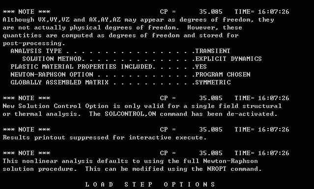 如果是 ANSYS/Ls-Dyna,在设置结果输出选项时需要设置为 BOTH 或 ANSYS,然后才能使用 ANSYS 的常用后处理来处理结果,否则的话,将不会生成 .rst 文件,就不能使用常用后处理来处理结果 ...